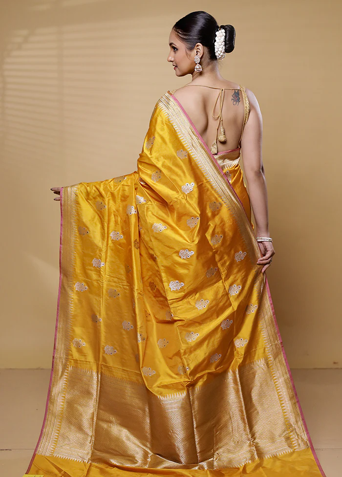 Yellow Handloom Katan Pure Silk Saree With Blouse Piece